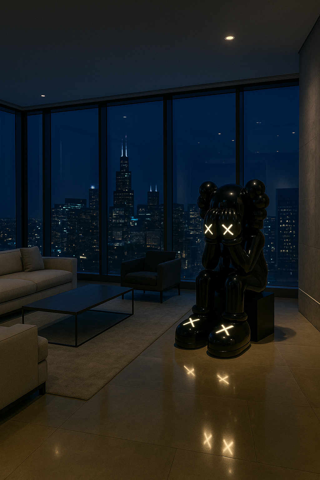 In a penthouse entry, hotel lobby, lounge, or modern living room, Iconify instantly reads as a curated art object not just decor. It’s clean, minimal, and futuristic, with a silhouette that quietly dominates any corner, hallway, or seating area you place it in.