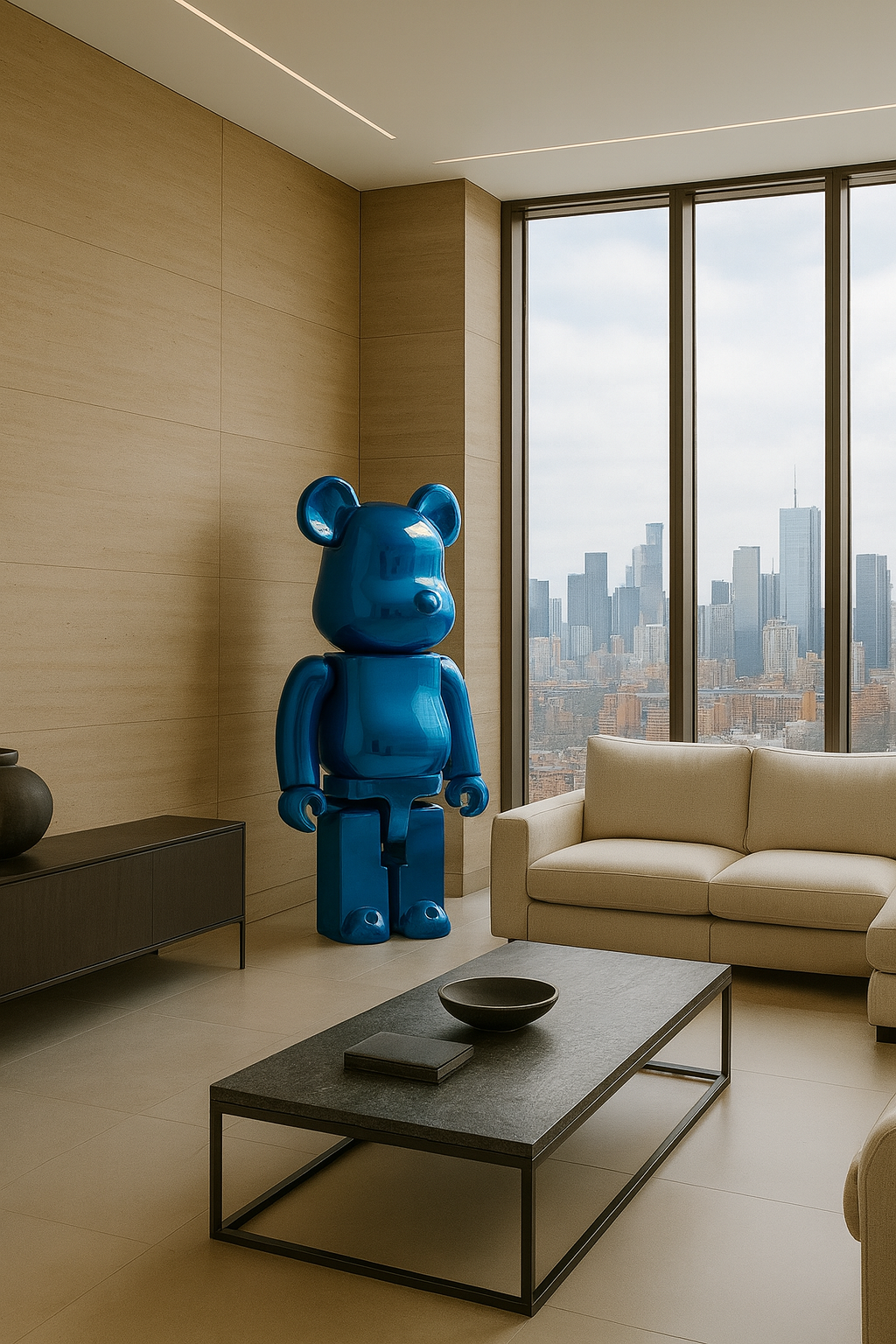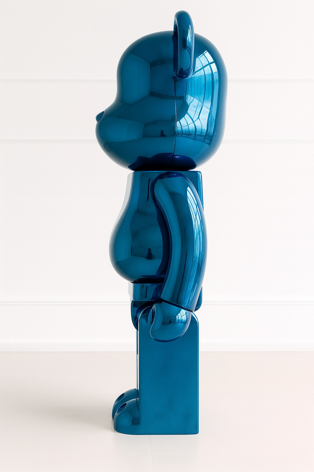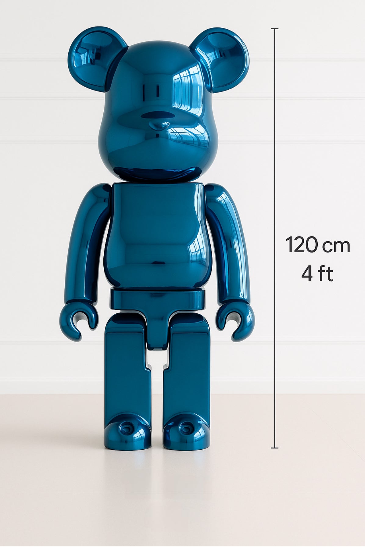 Commanding attention at 4 ft (122 cm) tall, Midnight Blues is a striking metallic bear sculpture that blends contemporary art with bold design. Its deep chrome-blue finish captures and reflects light from every angle, transforming any space into a statement of modern elegance